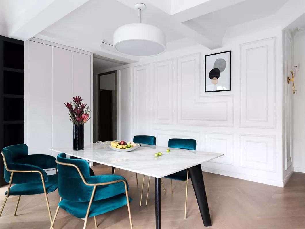 整個餐廳呈現中心對稱的六邊形,吊頂設計(jì)上仿照(zhào)寶石的切割方式,用斜面吊頂的手法,保留層高的同時弱化了梁體(tǐ)在空間上的壓抑感 也許是一束花,也許是一道光(guāng),也許是一桌飯菜,把生(shēng)活過成自(zì)己心悅的樣子