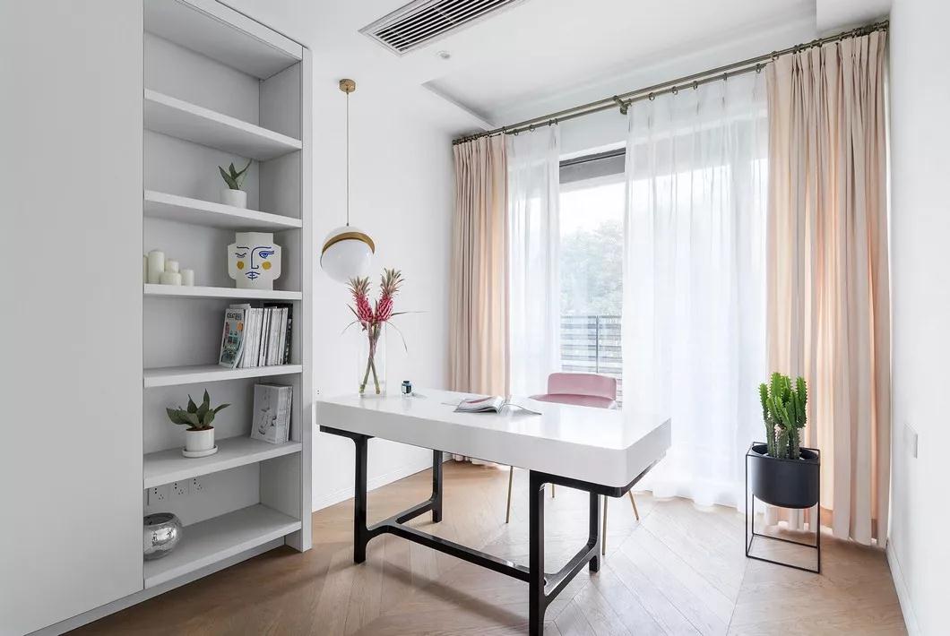 自(zì)然白(bái)與茱萸粉和諧并存,力求用簡單的色彩區别于其他(tā)現代風(fēng)格的厚重感 書(shū)房(fáng)更向往清新自(zì)然、随意輕松的居室環境
