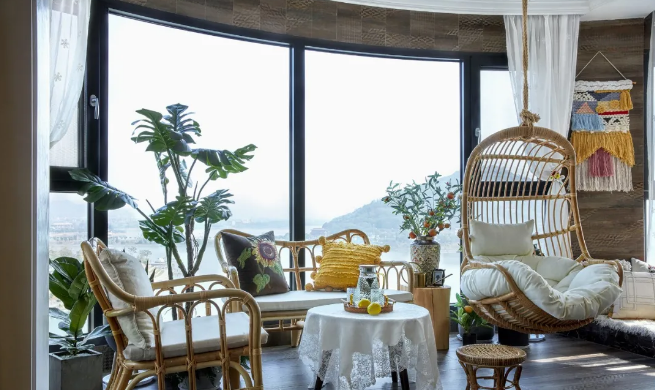 ▲ 休閑型陽台,平時用來(lái)曬曬太陽、看(kàn)看(kàn)書(shū)、喝(hē)喝(hē)茶之類的,一般會放(fàng)點躺椅、吊椅、懶人(rén)沙發、小桌子之類的。